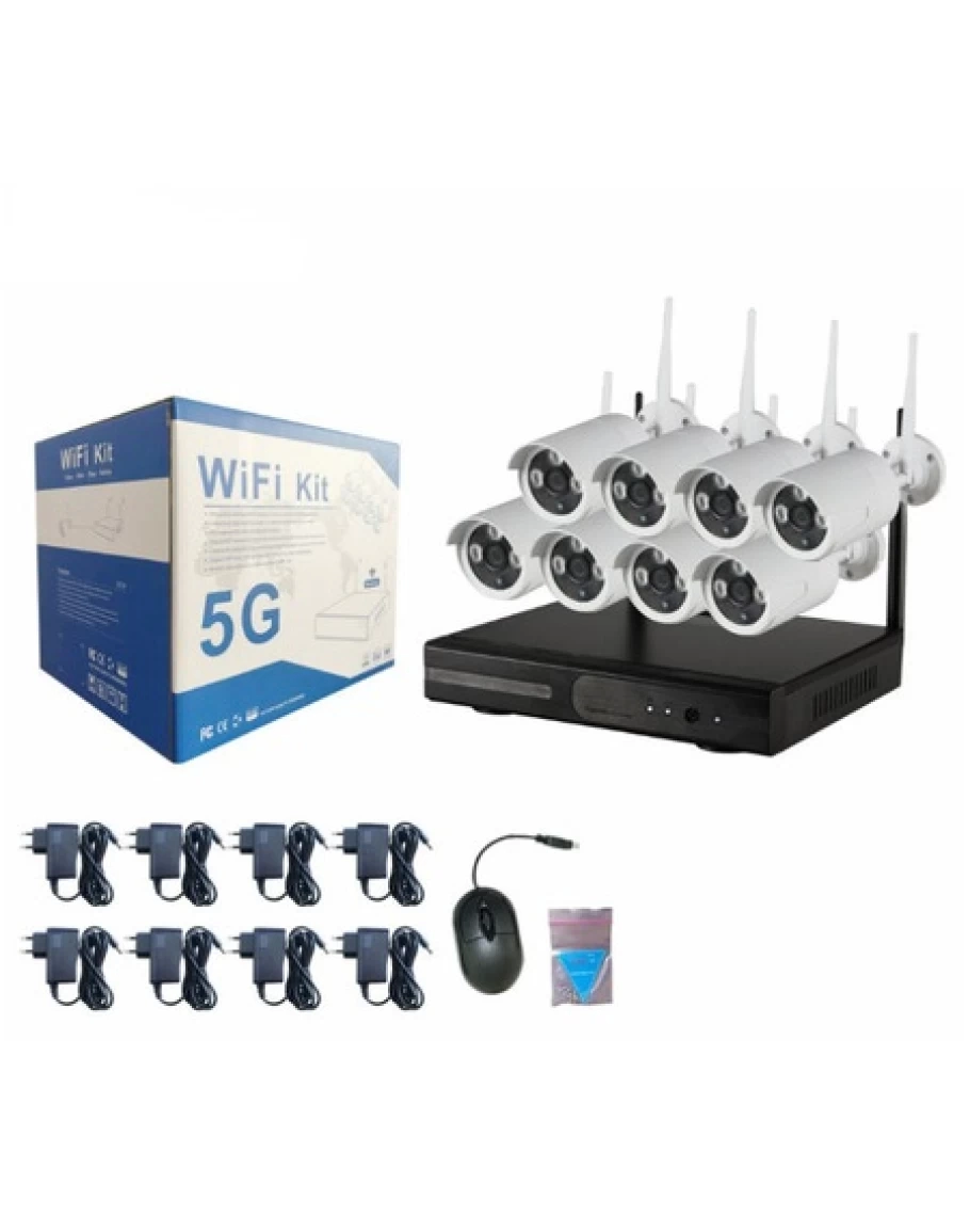 Комплект от 8 бр. камери за видеонаблюдение, оборудвани с 5G безжична технология.