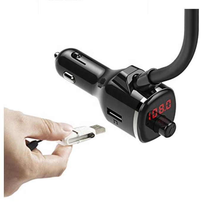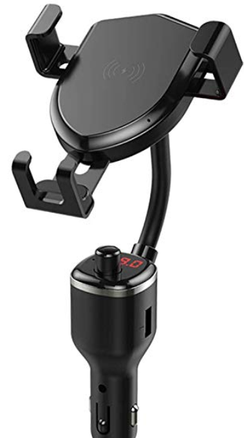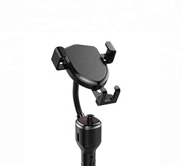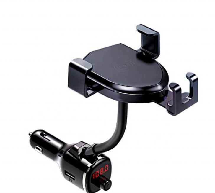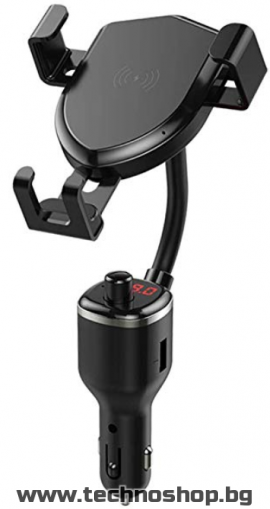 Блутут FM трансмитер с USB слот и стойка за безжично зареждане на смартфон