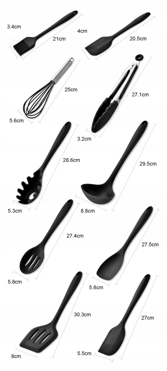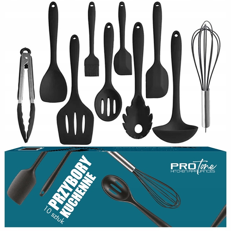 Практичен комплект от 10 части: Комплектът включва 10 различни кухненски принадлежности, които покриват широк спектър от нужди при готвене и сервиране на храна.