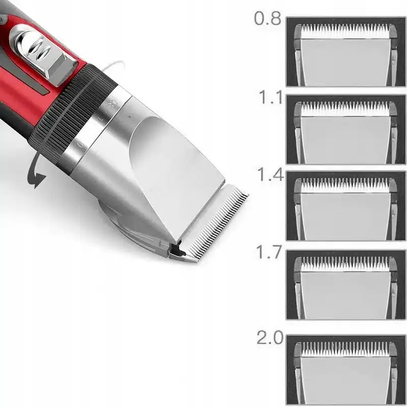 Електрическата машинка за подстригване на кучета, котки и други домашни любимци е перфектен уред, който ще осигури безупречен външен вид и комфорт на вашия домашен любимец ! Стоманените остриета осигуряват перфектно прецизно рязане. Дължината на космите без приставки може да се регулира ръчно с помощта на въртящото се копче. Включените в комплекта приставки помагат за оформяне на по-дълга коса.