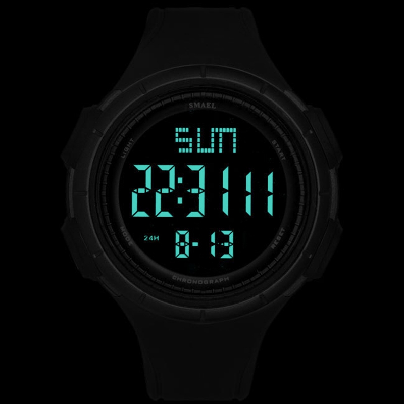 Циферблатът ясно показва всички данни, а деликатната тюркоазена луминесцентна подсветка ви позволява да виждате всичко през нощта и добавя чара, типичен за електронните часовници.