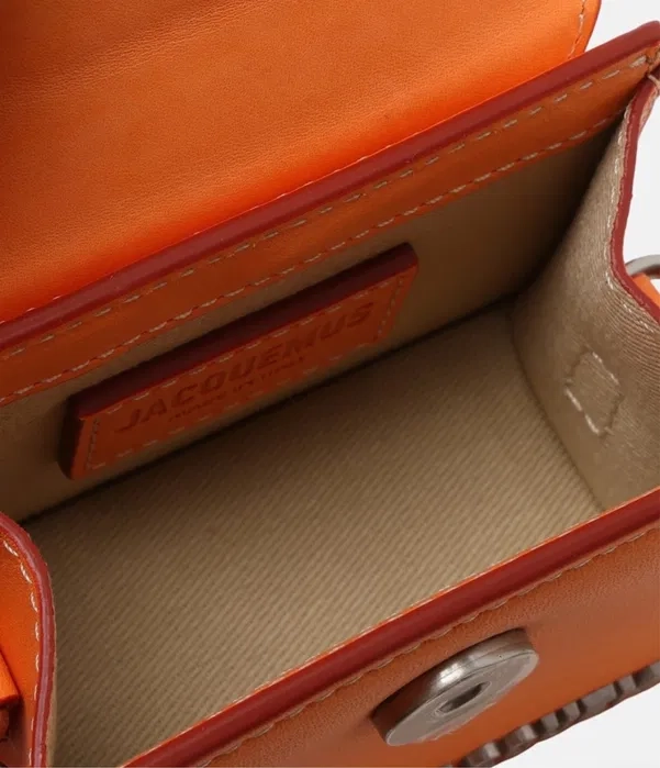 Jacquemus Le Chiquito Mini в ярък оранжев цвят е един от най-емблематичните и разпознаваеми модели на марката. Изработена от естествена кожа, тази мини чанта впечатлява с уникален дизайн, който съчетава модерен стил и характерната минималистична естетика на Jacquemus. Моделът включва метално лого “JACQUEMUS” отпред, магнитно закопчаване и удобна конструкция с къса дръжка и дълга регулируема презрамка, което позволява носене по различни начини – в ръка, на рамо или през тялото. Благодарение на яркия си оранжев цвят, чантата се превръща в акцент към всяка визия и е подходяща както за ежедневни излизания, така и за специални поводи. Тя е идеален избор за любителите на оригинални дизайнерски аксесоари и иконичен модерен стил.
