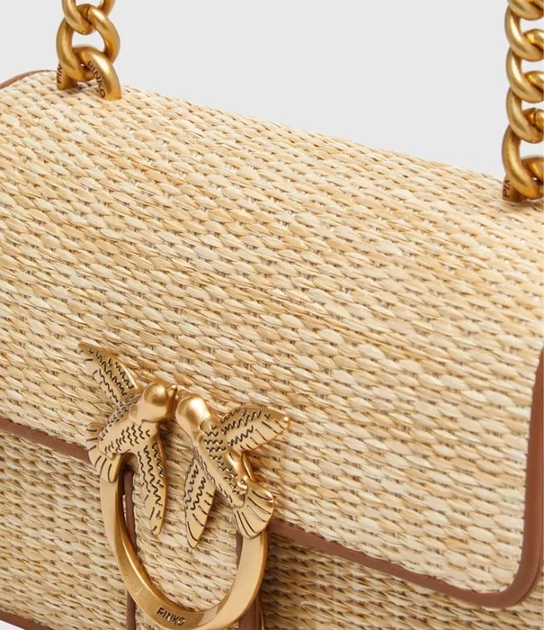 Тази елегантна дамска чанта впечатлява с характерното лого на Pinko, изчистен силует и фини метални детайли. Състоянието ѝ е чисто ново, а дизайнът я прави подходяща както за ежедневие, така и за по-елегантни визии. Чантата разполага с просторно отделение, което побира всички необходими вещи, и удобна презрамка, която позволява носене на рамо или около кръста за повече практичност и комфорт.