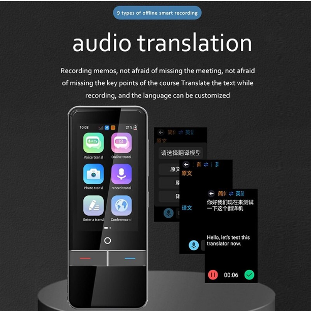 Интелигентен преводач JESWO с поддръжка на 142 езика онлайн – идеален за пътувания, бизнес или учене. С 2.95-инчов IPS сензорен екран, четириядрен A53 процесор, 1 GB RAM и 8 GB памет, този преводач на езици осигурява бърз и точен превод в реално време. Работи с гласов и текстов превод, като поддържа онлайн и офлайн режими. Лек, удобен и стилен, интелигентният преводач JESWO е перфектен избор за всеки, който иска лесна комуникация по света. Подходящ за туристи, бизнес пътувания и ежедневна употреба.