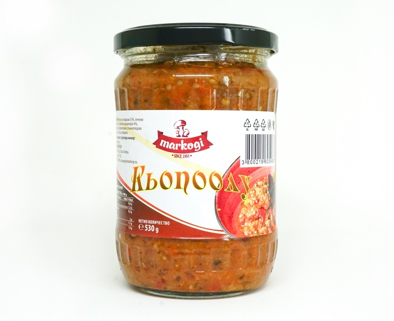 Кьопоолуто "Маркоги" е хармонично съчетание от патладжан, пиперки и подправки. Не съдържа никакви консерванти и химични добавки. Незаменимо предястие за традиционната българска трапеза.