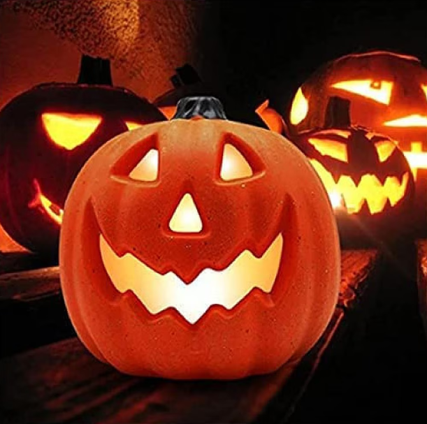 Комплект от 2 тиквени фенера за Хелоуин е перфектният избор за всяка празнична украса. Изработени с реалистичен дизайн и светещи ефекти, те излъчват мека, многоцветна светлина, която създава уникална атмосфера. Тези светещи тикви са подходящи за декорация на дом, двор, тераса или парти. Отличен вариант за любителите на Хелоуин аксесоари, които търсят оригинални и практични декоративни решения. Добавете комплект светещи тиквени фенери към вашата колекция от празнични украси и превърнете всяко събиране в незабравимо преживяване.