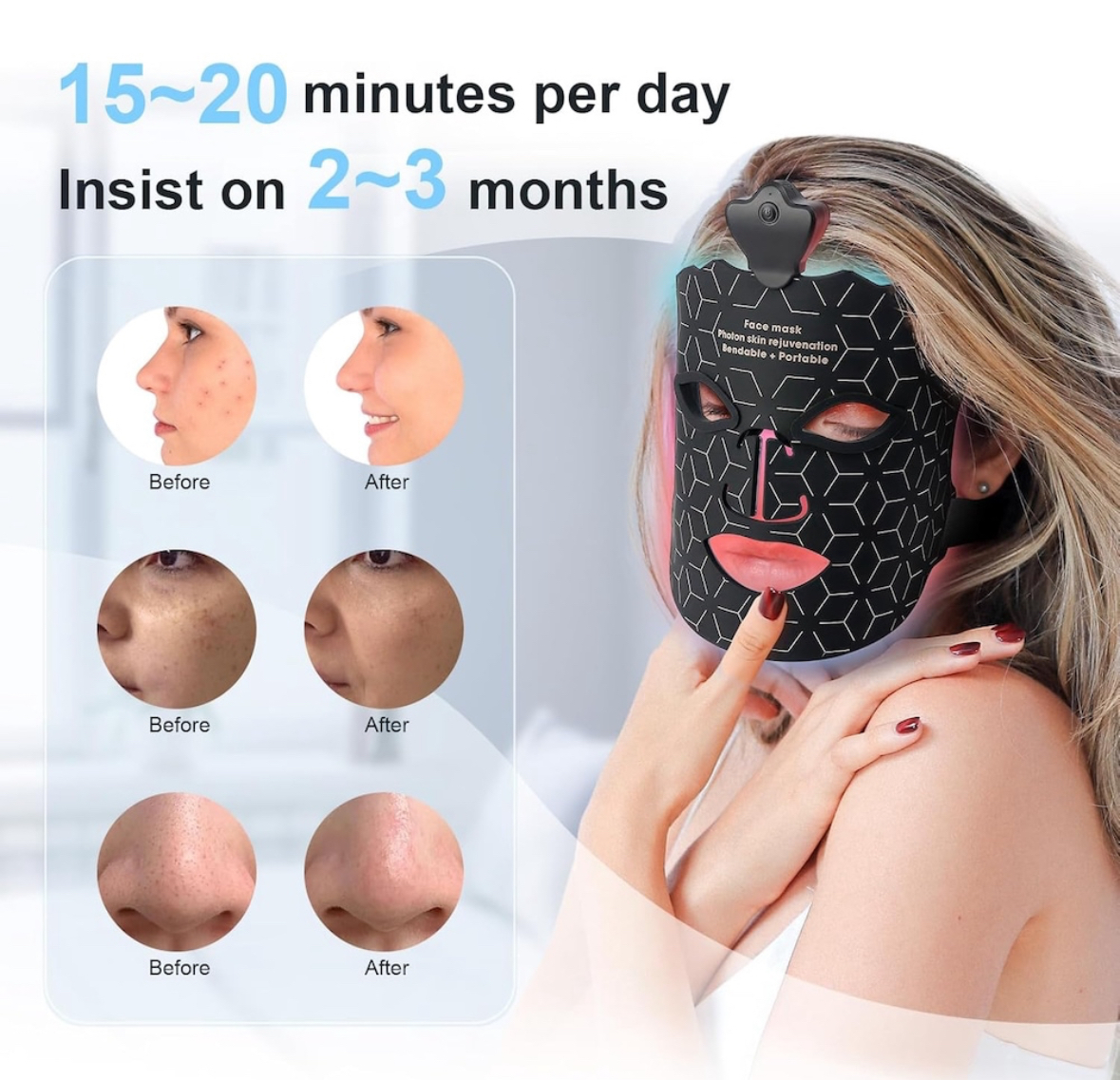 Професионална LED маска с 7 различни светлинни терапии, създадена да се справя с разнообразни кожни проблеми – от бръчки и отпусната кожа до акне, пигментни петна и неравен тен. Изработена от мек, гъвкав силикон, с удобен безжичен дизайн и регулируеми ленти за комфортно прилягане към всяка форма на лице.