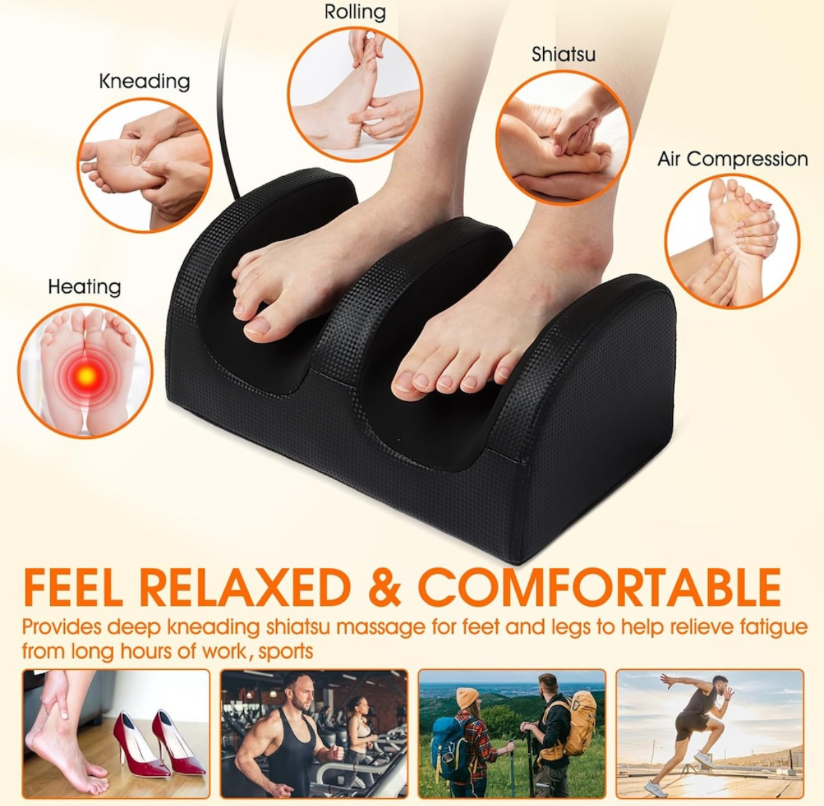 С Puepoul Масажор за крака можете да се насладите на релаксиращ и терапевтичен масаж навсякъде – у дома, в офиса или след тренировка.