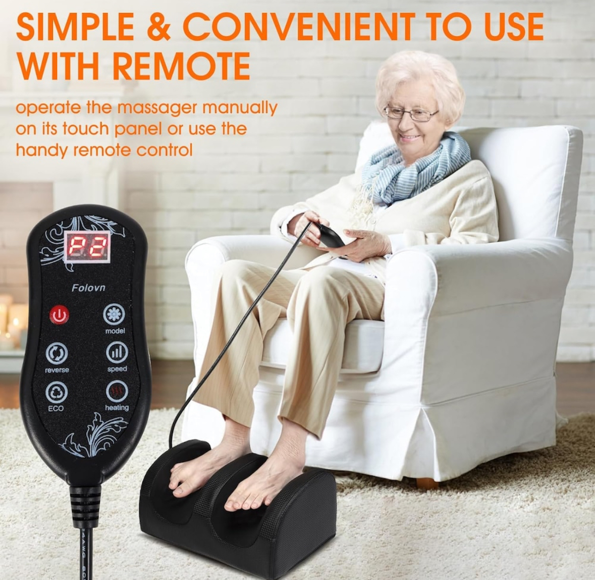 • Дълбок шиацу масаж: Масажните възли и режимите на месене осигуряват терапевтичен ефект върху стъпалата и прасците, намалявайки умората и болката.