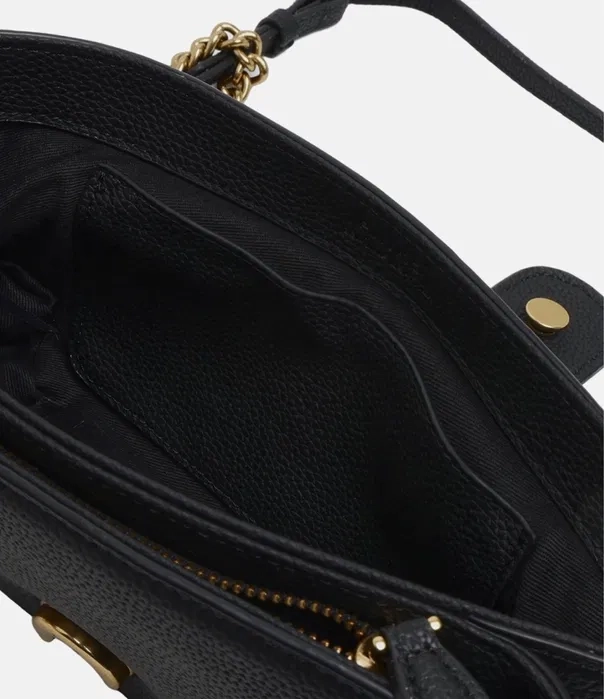 Оригиналната Pinko Leather Shoulder Bag в класически черен цвят е луксозна дизайнерска чанта, изработена от 100% естествена кожа, подходяща както за ежедневието, така и за специални поводи. Моделът впечатлява със стилните златисти метални елементи и елегантната верижна презрамка, която позволява носене на рамо или като crossbody. Чантата разполага с магнитен капак и функционално вътрешно разпределение – основно отделение, вътрешен джоб с цип и отворен джоб, които осигуряват отлична организация. С размери 27 x 17 x 8 см, моделът е компактен, но просторен. Чисто нов артикул, подходящ за любителите на оригинални дизайнерски аксесоари и идеален за подарък. Перфектен избор за всяка дама, която търси луксозна чанта Pinko, стил и високо качество.