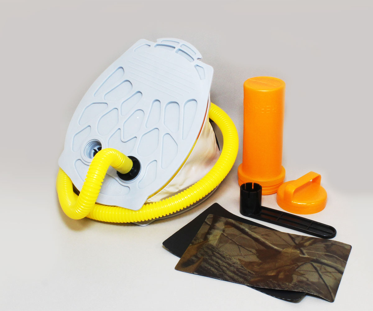 Комплектът включва транспортен сак, ремонтен комплект и помпа