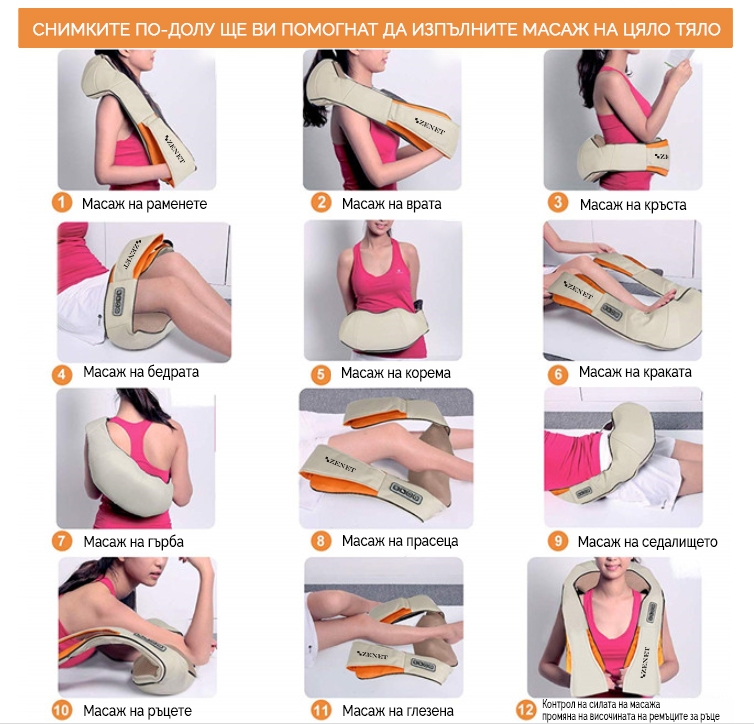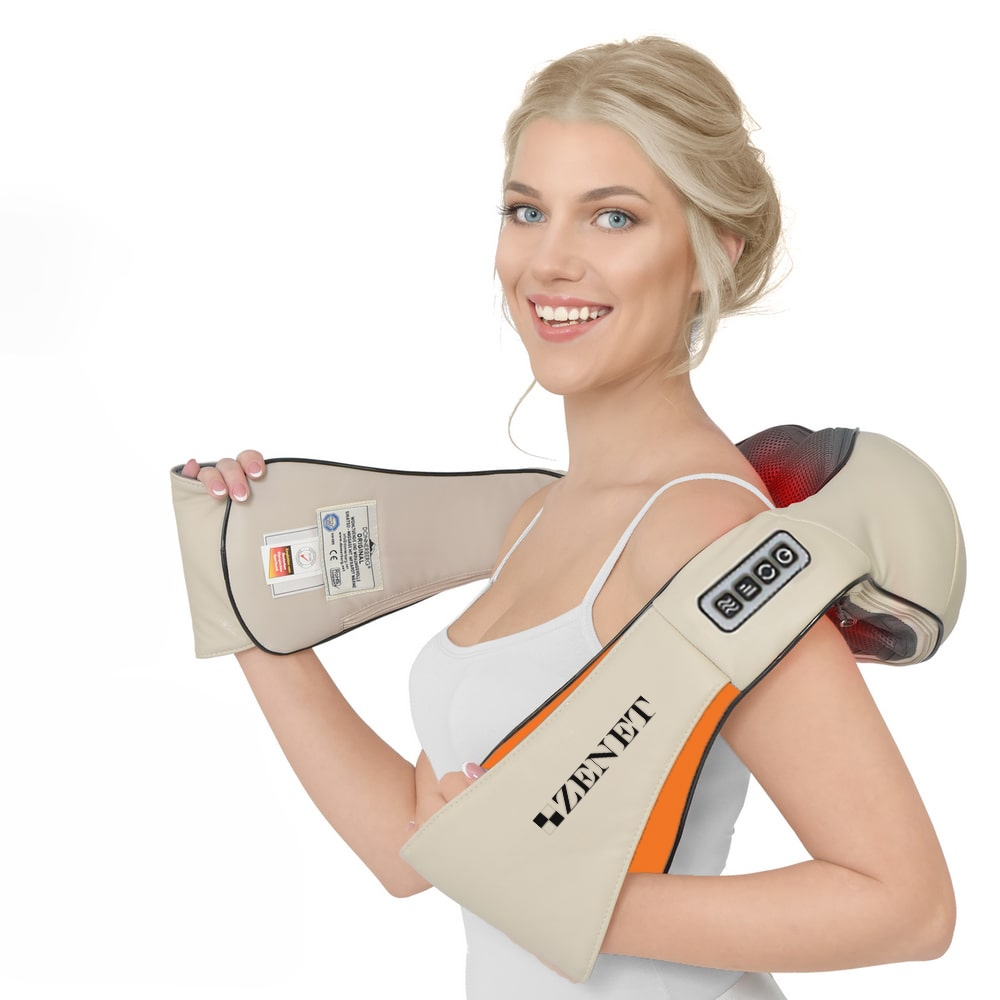 Ролков масажор за врат ZENET ZET-757 с нагряване е практично решение за отпускане на мускулите на врата, раменете и гърба в домашни условия или в автомобила. Уредът използва шиацу масаж с въртящи се ролки, които имитират движенията на масажист, а функцията за нагряване допринася за по-приятно и релаксиращо усещане. Подходящ за хора със заседнал начин на живот, продължителна работа пред компютър или често шофиране. Лесен за използване, компактен и удобен за пренасяне.