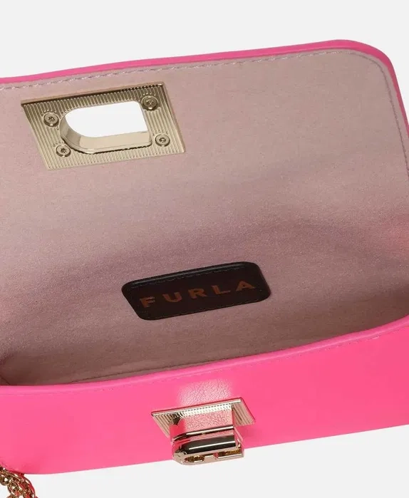 Furla Cross-body Bag в ярък розов цвят е стилен и висококачествен аксесоар, създаден за дами, които ценят елегантността и удобството. Изработена от естествена кожа, чантата се отличава с компактни размери, които я правят идеална както за ежедневно носене, така и за официални поводи. Моделът разполага със златист метален синджир, осигуряващ комфортно носене през рамо, и характерната за марката златиста закопчалка, която придава луксозен акцент. Вътрешното пространство включва основно отделение с вътрешен джоб, подходящо за най-важните вещи. Състоянието ѝ е чисто ново (неупотребявана), което гарантира перфектна визия и безупречно качество. Този модел е чудесен избор за всяка жена, която търси оригинална Furla чанта с модерен характер, надеждна изработка и стилно присъствие.