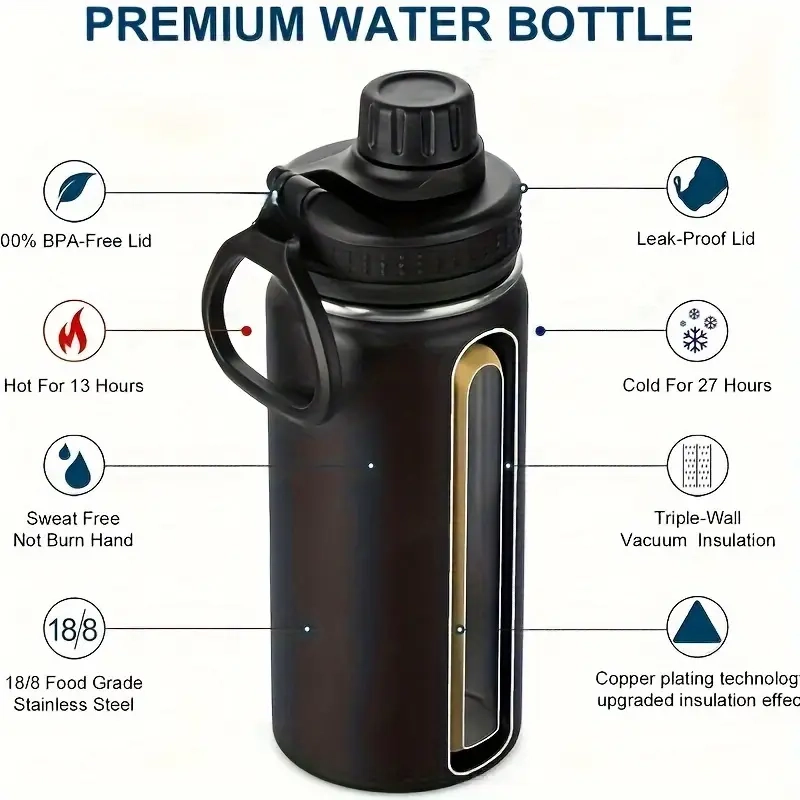 ази висококачествена термос бутилка от неръждаема стомана (950 мл/32oz) е създадена за хора, които ценят удобството и свежестта навсякъде. Благодарение на двустенната вакуумна изолация, напитките ви остават топли до 24 часа и студени до 12 часа.