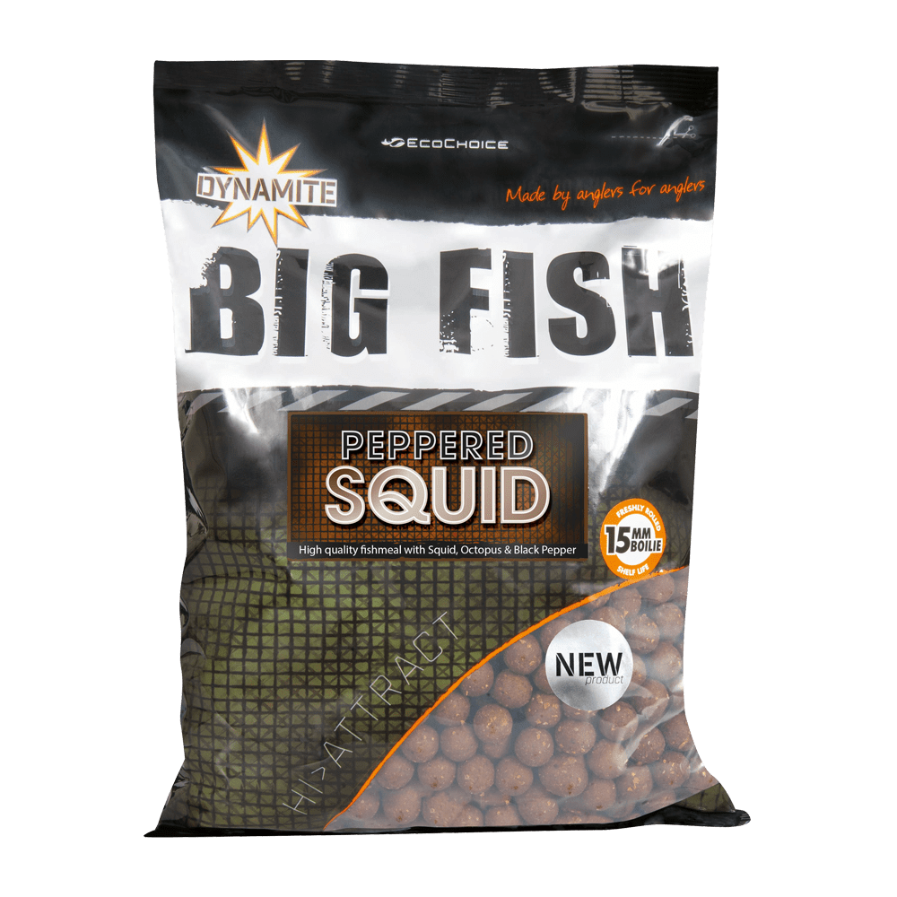 Доверете се на новата серия на Dynamite Baits за 2024 година - Peppered Squid топчета и атрактанти. Продуктите представляват ненадмината комбинация между висококачествено рибно брашно, чушки на прах, млечни протеини и смес от рибни масла - задължителна стръв за любителите на шарански риболов. Топчетата са с твърда текстура и могат да бъдат ефективно използвани за стръв. Едновременно с това излъчват силни атрактанти за продължителен период от време щом попаднат във водата. Ароматът на калмари и октопод е отличителната черта на тази серия продукти, към който е добавено етерично масло от черен пипер, хидролизат от черен дроб и смесени рибени масла.