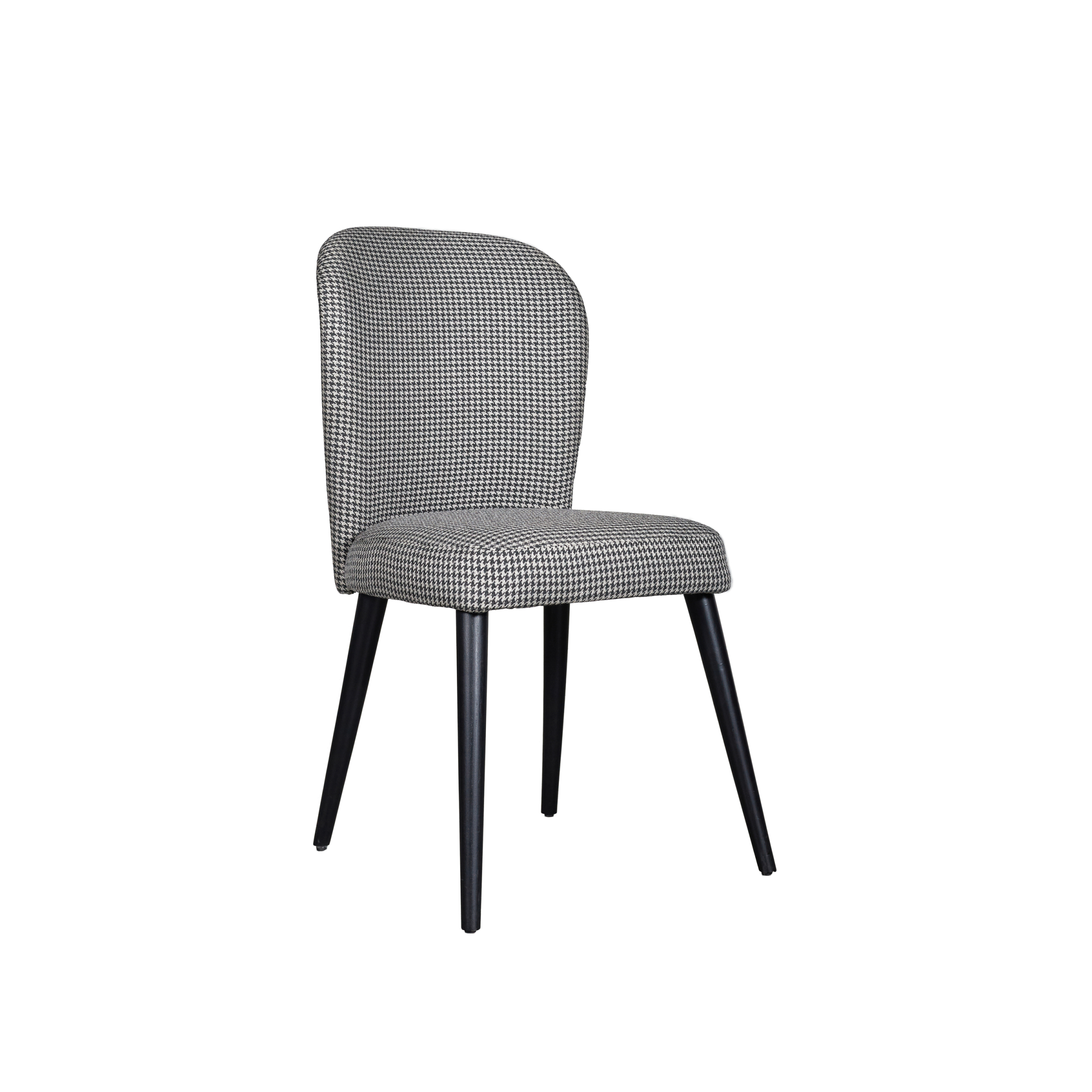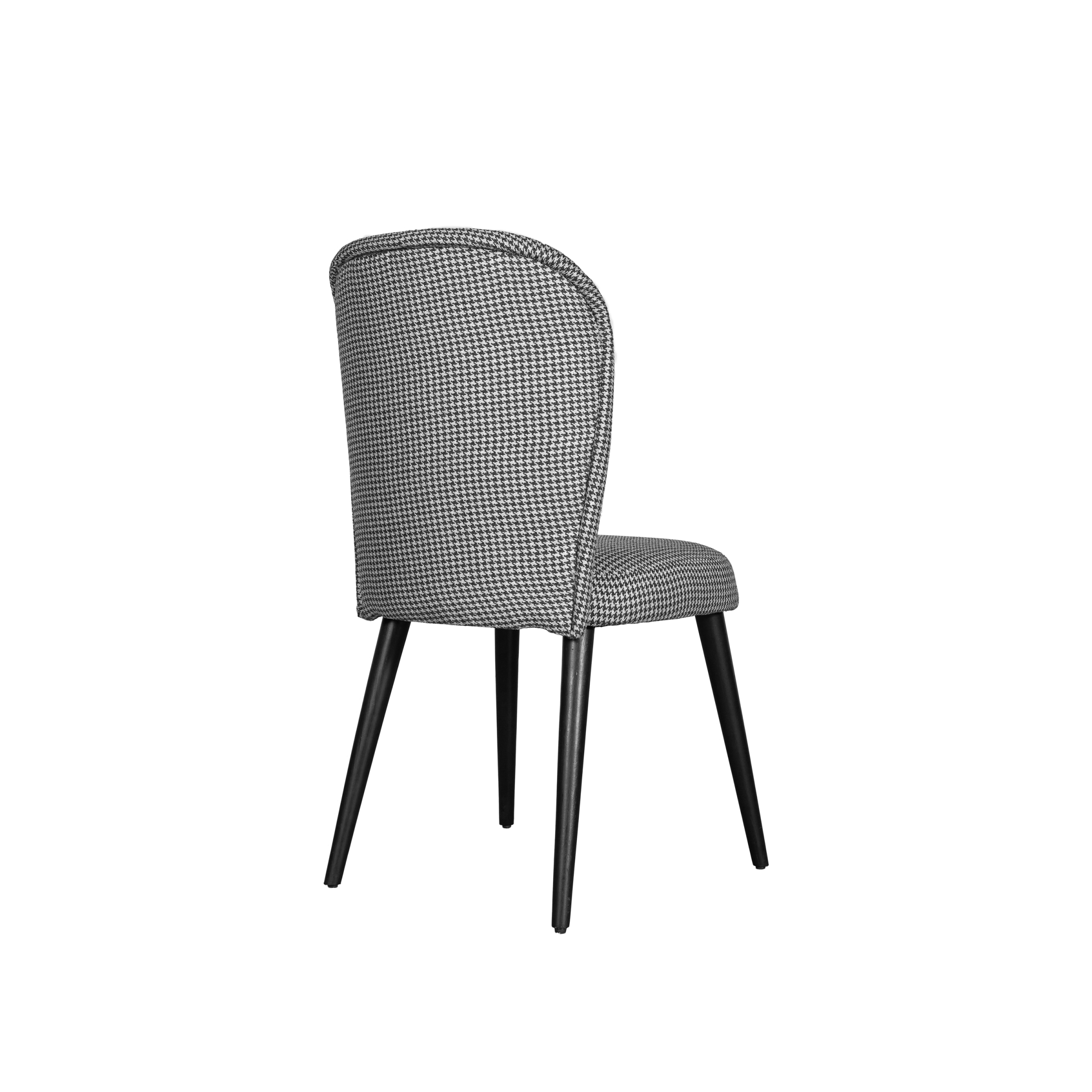 Трапезният стол Scacchi изискана мебел, изработена с карирана дамаска в черно и бяло и дървени черни крака.