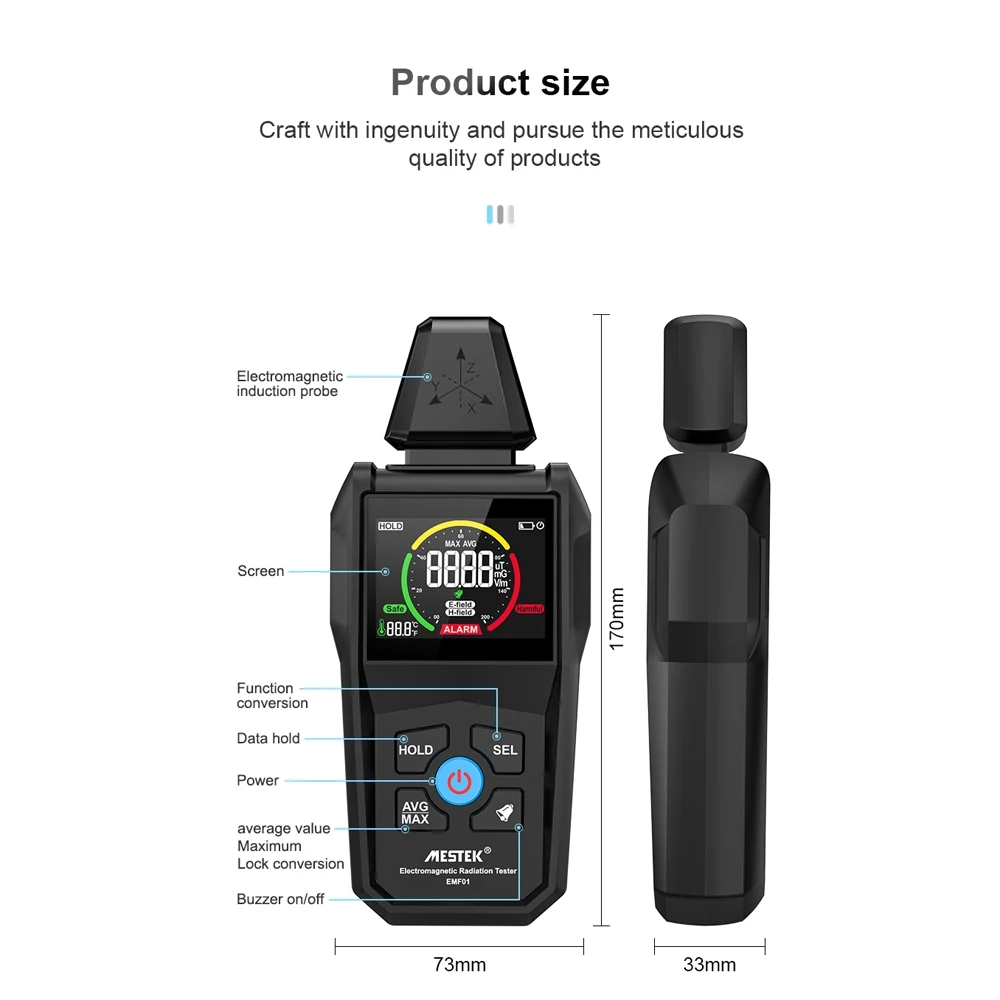 С уреда за измерване на електрическа радиация Electromagnetic Radiation Detector RD9300 може да избягвате да посещавате места наситени с радиация, както и да намалите радиационния фон у дома.