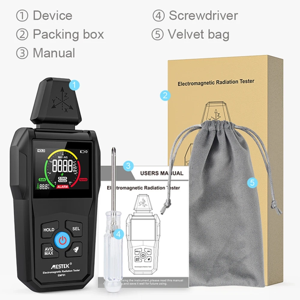 EMF Метър с Цифров цветен екран EMF01 - Дектектор за електро вълнова радиация, електромагнитно поле, радиационен смог.