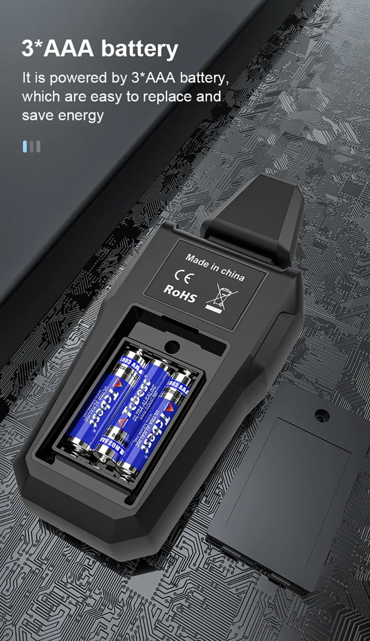- Захранване: 1.5V x 3 AAA (без батерии в комплекта)